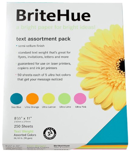 Mohawk BriteHue Vellum Text Assortment Pack 24 lb/60, 8.5 x 11 Inches, 250 Sheets per Pack (50 Sheets each) (Sold as 1 Pack), Ultra Lemon, Ultra Orange, Ultra Lime, Ultra Pink, Sea Blue (109991) Review