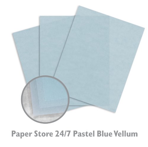 Translucent Vellum Inkjet Pastel Blue Paper - 8 1/2 x 11 in 27 lb Bond - 50/Package. Gorgeous Pastel Blue translucent vellum paper. This Pastel Blue vellum has the feel of typical translucent vellums and exhibits a non-mottled look with its cloudless fiber formation. The Pastel Blue color is achieved by adding Pastel Blue pigments into the paper's pulp before it goes to the paper machine. Pastel Blue Vellum is perfect for all paper crafting applications. This vellum is equally smooth on both sides of the paper which let's you create your art work on both sides, back and front. Our vellum is made by a family owned paper mill in Europe, who has made fine papers for more than two centuries. Now you can have this superior vellum made by one paper making family for your paper crafting family. This is arguably the highest quality translucent vellum you can buy.Translucent Vellum Inkjet Pastel Blue Paper - 50/Package Feature